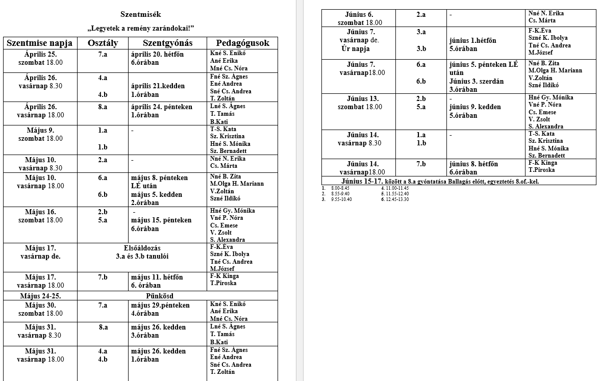Alapító igazgatónőnkért mondott szentmise 2026. 03. 31-én 16.00-kor lesz a Szent Imre templomban. A Szentmise után az iskola ebédlőjében várunk mindenkit közös emlékezésre, agapéra.