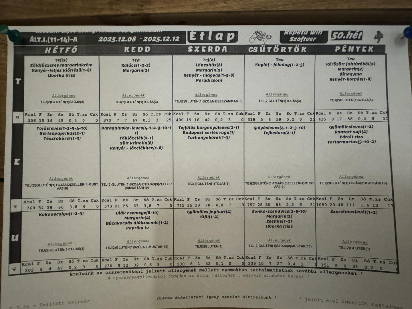 Teljes árú 3X-i étkezés: 820.- Ft/nap; csak ebéd:560.- Ft/nap