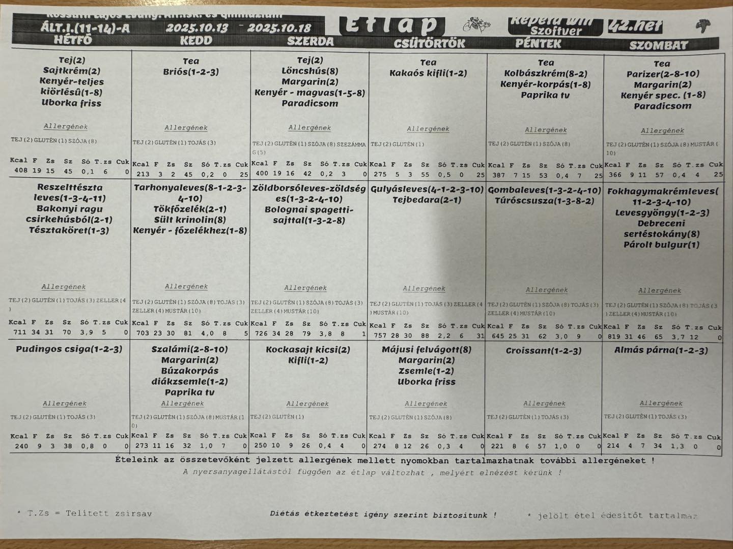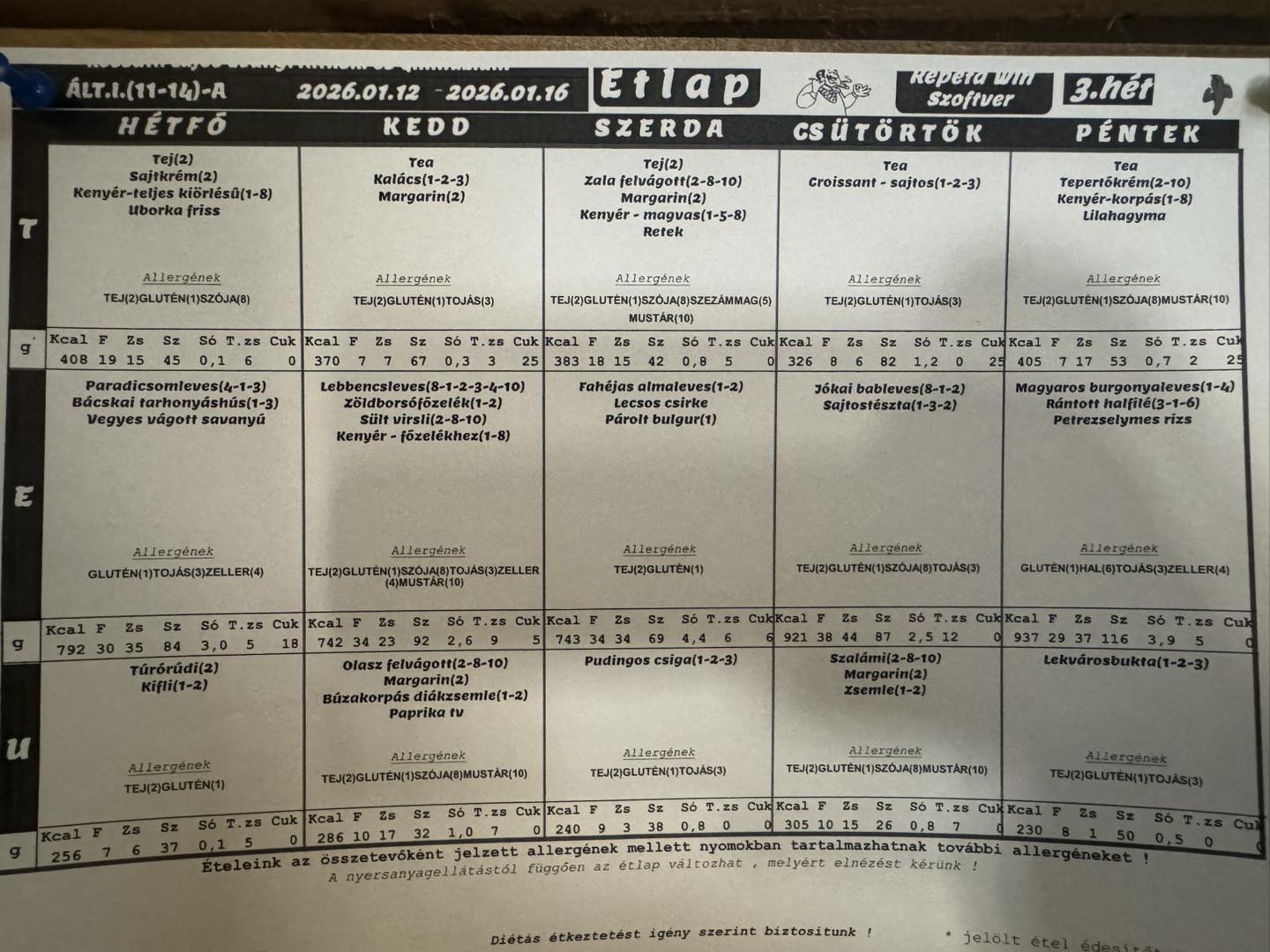 Teljes árú 3X-i étkezés: 820.- Ft/nap; csak ebéd:560.- Ft/nap